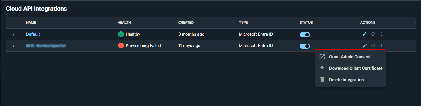 同意を付与した後、更新アイコン をクリックしてインテグレーションを再プロビジョニングします。