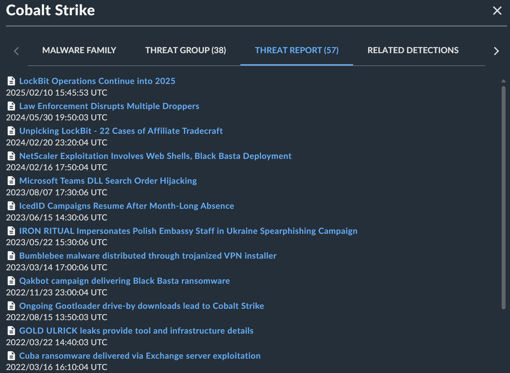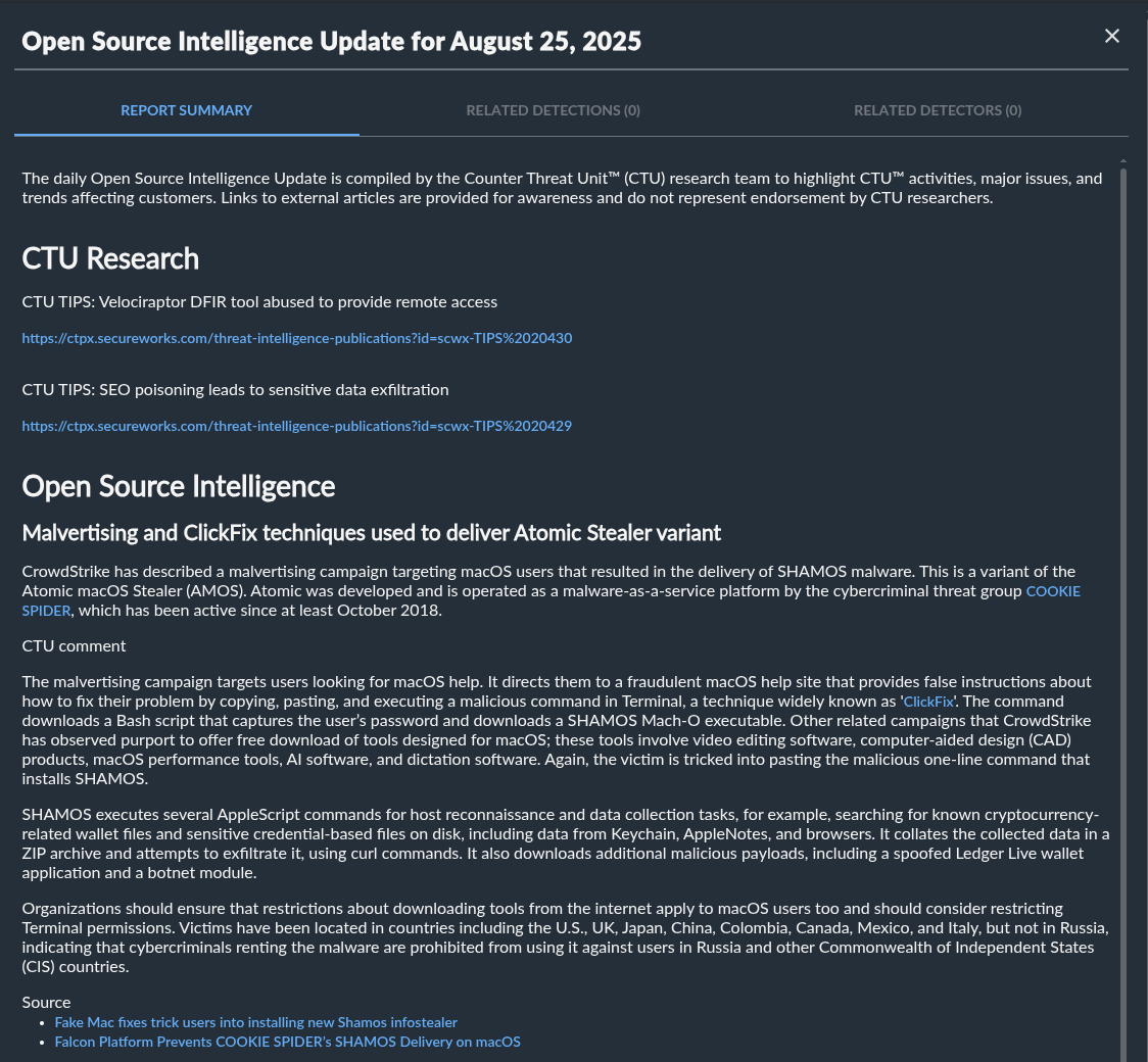 | 脅威レポート | CTUレポート名 | "Daily Threat Brief", "Ransomware Analysis" |
